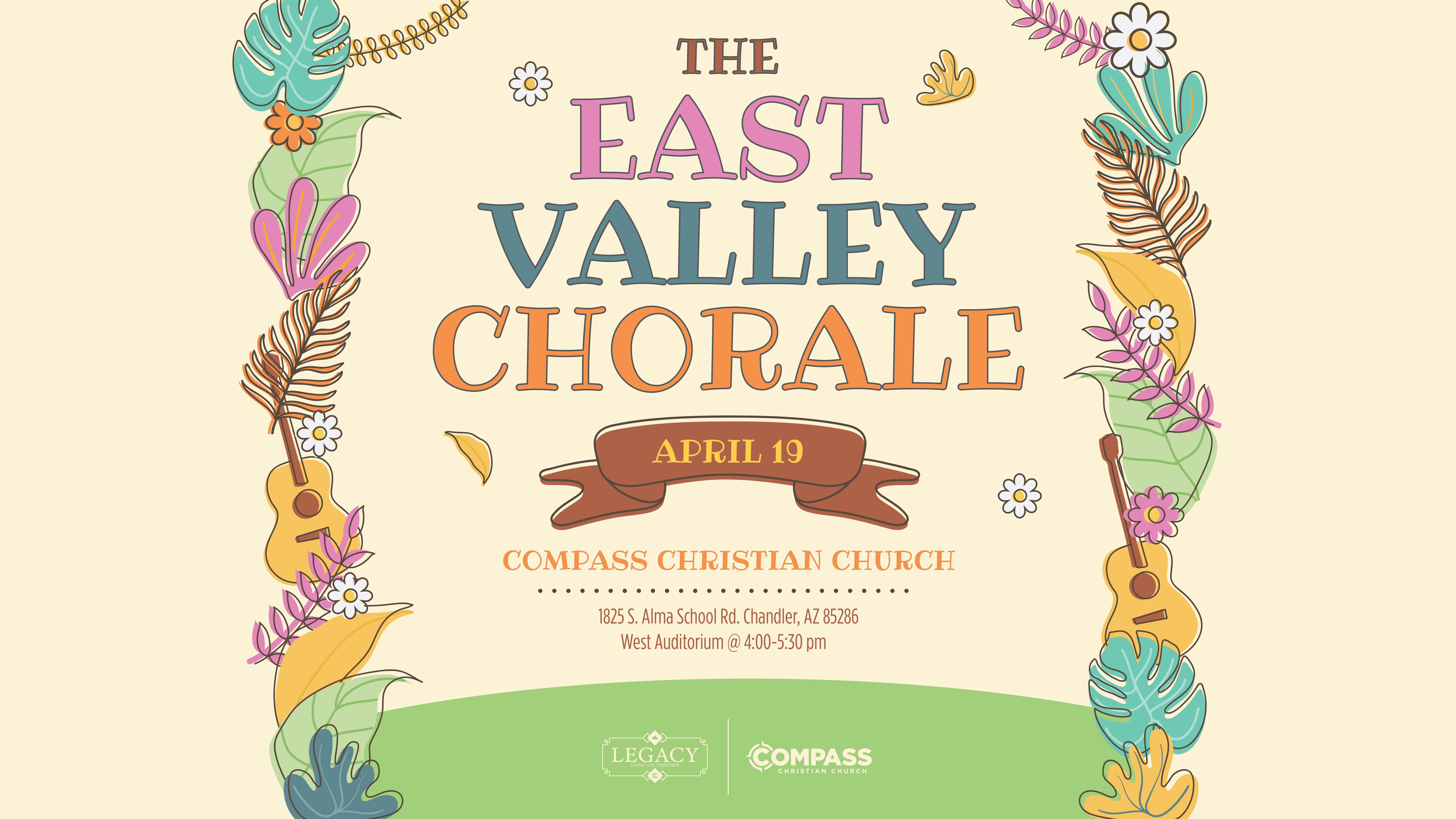 Spring Concert from the East Valley Chorale presented by Legacy. All ages welcome to enjoy a message of encouragement, and inspiration through music. Free to attend.